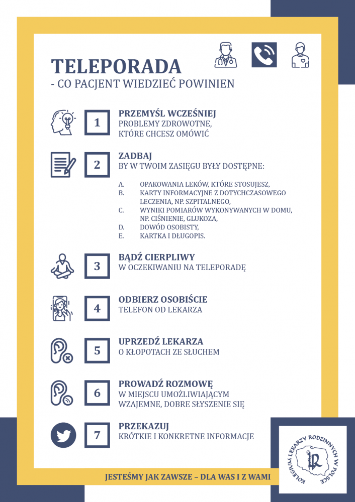 Informacje o obowiązkowym zakrywaniu nosa i ust oraz jak dobrze przygotować się do teleporady.